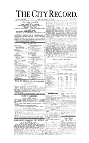 The City Record newspaper publishes notices which includes but is not limited to: public hearings and meetings, public auctions and sales, solicitations and awards and official rules proposed and adopted by city agencies. This is the City Record Newspaper for May 12, 1914.