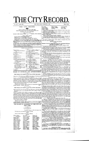The City Record newspaper publishes notices which includes but is not limited to: public hearings and meetings, public auctions and sales, solicitations and awards and official rules proposed and adopted by city agencies. This is the City Record Newspaper for February 14, 1918.