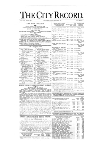 The City Record newspaper publishes notices which includes but is not limited to: public hearings and meetings, public auctions and sales, solicitations and awards and official rules proposed and adopted by city agencies. This is the City Record Newspaper for March 31, 1919 with supplement.