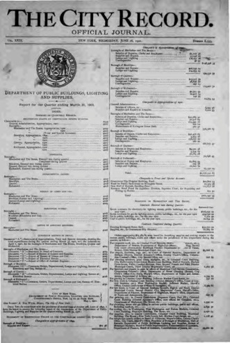 The City Record newspaper publishes notices which includes but is not limited to: public hearings and meetings, public auctions and sales, solicitations and awards and official rules proposed and adopted by city agencies. This is the City Record Newspaper for June 26, 1901.
