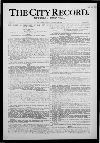 The City Record newspaper publishes notices which includes but is not limited to: public hearings and meetings, public auctions and sales, solicitations and awards and official rules proposed and adopted by city agencies. This is the City Record Newspaper for January 24, 1902.