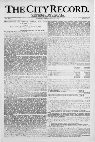 The City Record newspaper publishes notices which includes but is not limited to: public hearings and meetings, public auctions and sales, solicitations and awards and official rules proposed and adopted by city agencies. This is the City Record Newspaper for August 05, 1902.