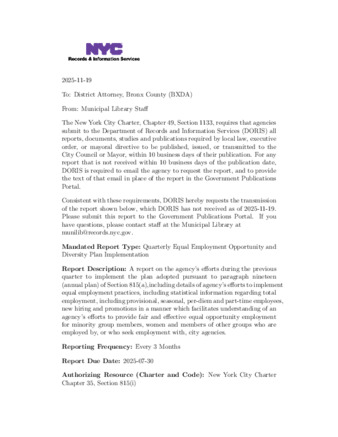 Late Notice - Quarterly Equal Employment Opportunity and Diversity Plan Implementation