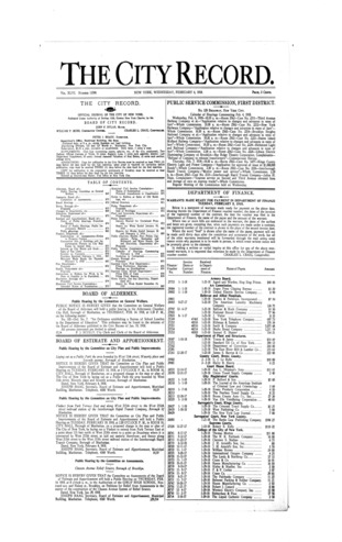 The City Record newspaper publishes notices which includes but is not limited to: public hearings and meetings, public auctions and sales, solicitations and awards and official rules proposed and adopted by city agencies. This is the City Record Newspaper for February 06, 1918.