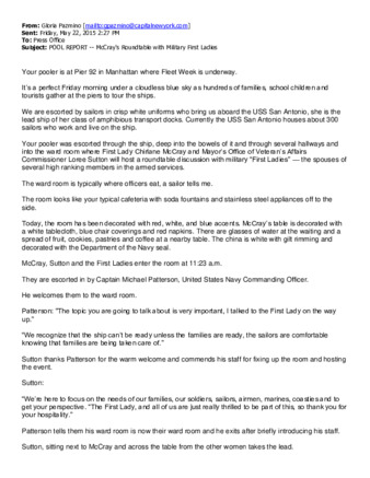 Mayor's Press Release: McCray's Roundtable with Military First Ladies