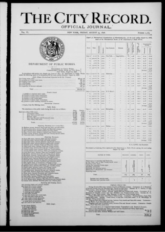 The City Record newspaper publishes notices which includes but is not limited to: public hearings and meetings, public auctions and sales, solicitations and awards and official rules proposed and adopted by city agencies. This is the City Record Newspaper for August 23, 1878.