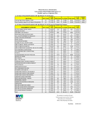 Reports engagement status of heads of household between & including the ages of 16-24. Information disaggregated by the following categories: 1) individuals aged 16 and 17; 2) individuals aged 18-20; and 3) individuals aged 21-24, calculated both as an actual number & percentage of caseload.
