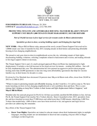 Mayor's Press Release: PROTECTING TENANTS AND AFFORDABLE HOUSING: MAYOR DE BLASIO’S TENANT SUPPORT UNIT HELPS 1,000 TENANTS FIGHT HARASSMENT, SECURE R