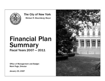 - The City of New York Financial Plan Summary Fiscal Years 2007-2011