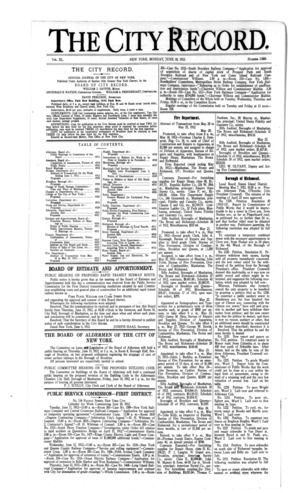 The City Record newspaper publishes notices which includes but is not limited to: public hearings and meetings, public auctions and sales, solicitations and awards and official rules proposed and adopted by city agencies. This is the City Record Newspaper for June 10, 1912.