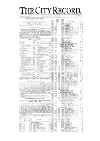 The City Record newspaper publishes notices which includes but is not limited to: public hearings and meetings, public auctions and sales, solicitations and awards and official rules proposed and adopted by city agencies. This is the City Record Newspaper for August 09, 1916.