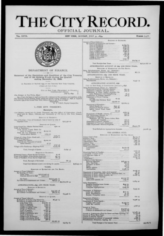 The City Record newspaper publishes notices which includes but is not limited to: public hearings and meetings, public auctions and sales, solicitations and awards and official rules proposed and adopted by city agencies. This is the City Record Newspaper for July 31, 1899.