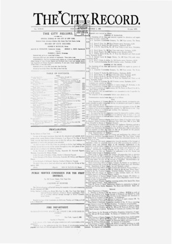 The City Record newspaper publishes notices which includes but is not limited to: public hearings and meetings, public auctions and sales, solicitations and awards and official rules proposed and adopted by city agencies. This is the City Record Newspaper for October 01, 1909.