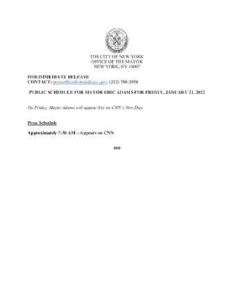 PUBLIC SCHEDULE FOR MAYOR ERIC ADAMS FOR FRIDAY, JANUARY 21, 2022