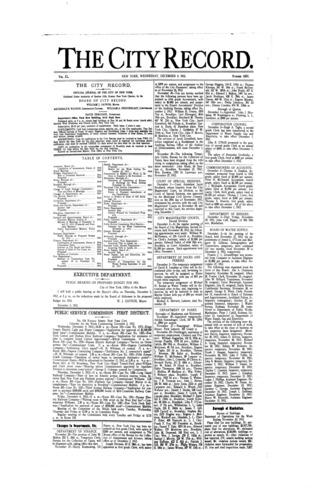 The City Record newspaper publishes notices which includes but is not limited to: public hearings and meetings, public auctions and sales, solicitations and awards and official rules proposed and adopted by city agencies. This is the City Record Newspaper for December 04, 1912.