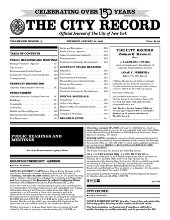 The City Record newspaper publishes notices which includes but is not limited to public hearings and meetings, public auctions and sales, solicitations, and awards and official rules proposed and adopted by city agencies.