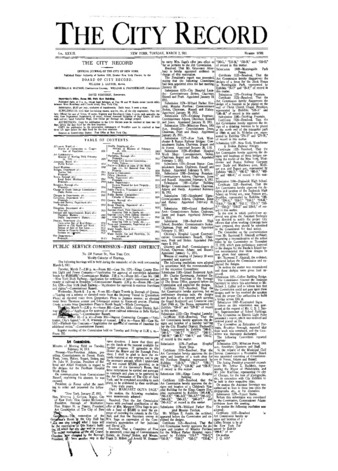 The City Record newspaper publishes notices which includes but is not limited to: public hearings and meetings, public auctions and sales, solicitations and awards and official rules proposed and adopted by city agencies. This is the City Record Newspaper for March 07, 1911.