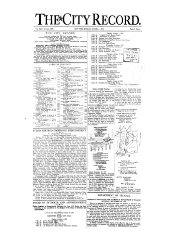 The City Record newspaper publishes notices which includes but is not limited to: public hearings and meetings, public auctions and sales, solicitations and awards and official rules proposed and adopted by city agencies. This is the City Record Newspaper for October 01, 1916.