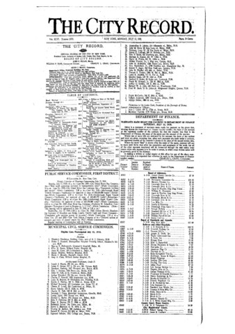 The City Record newspaper publishes notices which includes but is not limited to: public hearings and meetings, public auctions and sales, solicitations and awards and official rules proposed and adopted by city agencies. This is the City Record Newspaper for July 15, 1918.