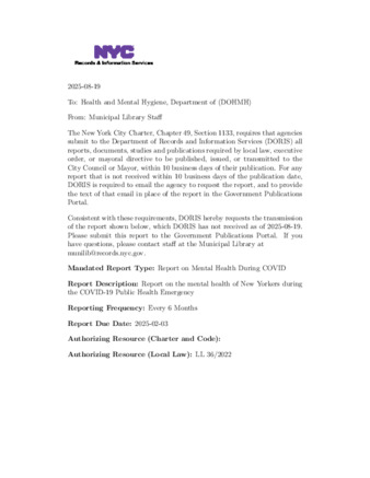 Report on the mental health of New Yorkers during the COVID-19 Public Health Emergency