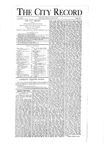 The City Record newspaper publishes notices which includes but is not limited to: public hearings and meetings, public auctions and sales, solicitations and awards and official rules proposed and adopted by city agencies. This is the City Record Newspaper for January 21, 1911.