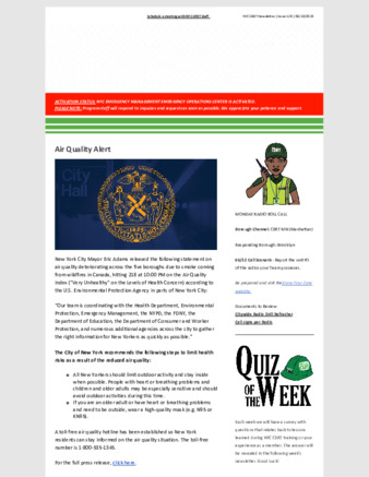 New York City Emergency Management is responsible for the NYC Community Emergency Response Team (CERT) program and distributes this weekly CERT newsletter to all active members so that they stay up-to-date on new opportunities, policies and initiatives that affect their membership.