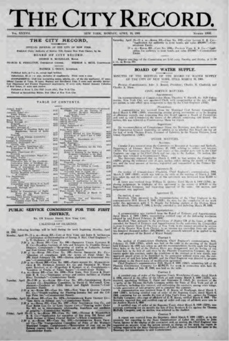 The City Record newspaper publishes notices which includes but is not limited to: public hearings and meetings, public auctions and sales, solicitations and awards and official rules proposed and adopted by city agencies. This is the City Record Newspaper for April 19, 1909.