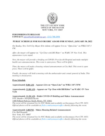 PUBLIC SCHEDULE FOR MAYOR ERIC ADAMS FOR SUNDAY, JANUARY 30, 2022