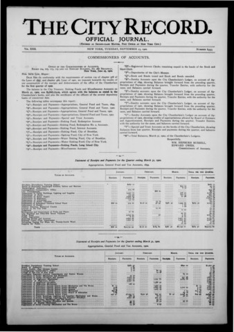 The City Record newspaper publishes notices which includes but is not limited to: public hearings and meetings, public auctions and sales, solicitations and awards and official rules proposed and adopted by city agencies. This is the City Record Newspaper for September 23, 1902.