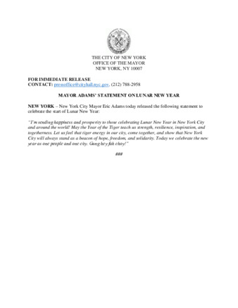 MAYOR ADAMS’ STATEMENT ON LUNAR NEW YEAR