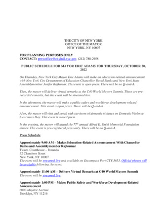 PUBLIC SCHEDULE FOR MAYOR ERIC ADAMS FOR THURSDAY, OCTOBER 20, 2022