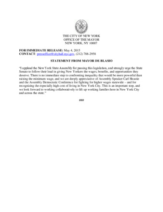 Mayor's Press Release: STATEMENT FROM MAYOR DE BLASIO