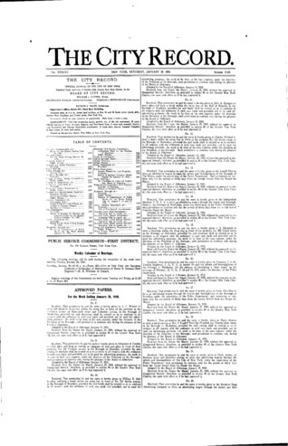The City Record newspaper publishes notices which includes but is not limited to: public hearings and meetings, public auctions and sales, solicitations and awards and official rules proposed and adopted by city agencies. This is the City Record Newspaper for January 29, 1910.
