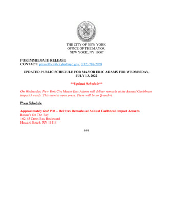 UPDATED PUBLIC SCHEDULE FOR MAYOR ERIC ADAMS FOR WEDNESDAY, JULY 13, 2022