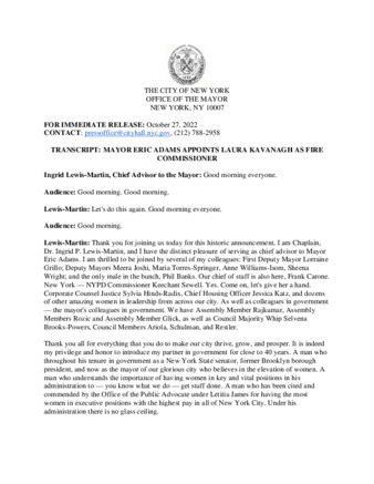 TRANSCRIPT: MAYOR ERIC ADAMS APPOINTS LAURA KAVANAGH AS FIRE COMMISSIONER