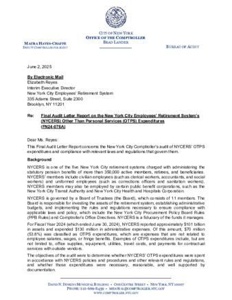 Final Audit Letter Report on the New York City Employees' Retirement System's (NYCERS) Other Than Personal Services (OTPS) Expenditures