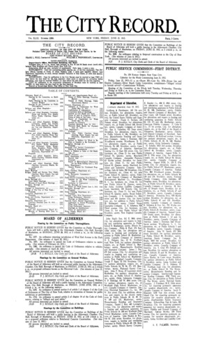 The City Record newspaper publishes notices which includes but is not limited to: public hearings and meetings, public auctions and sales, solicitations and awards and official rules proposed and adopted by city agencies. This is the City Record Newspaper for June 25, 1915.
