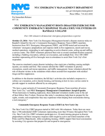 - 57-16 NYC Emergency Management Hosts Disaster Exercise For Community Emergency Response Team (CERT) Volunteers On Randall's Island