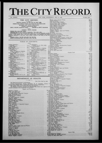 The City Record newspaper publishes notices which includes but is not limited to: public hearings and meetings, public auctions and sales, solicitations and awards and official rules proposed and adopted by city agencies. This is the City Record Newspaper for May 17, 1905.