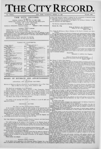 The City Record newspaper publishes notices which includes but is not limited to: public hearings and meetings, public auctions and sales, solicitations and awards and official rules proposed and adopted by city agencies. This is the City Record Newspaper for March 19, 1908.