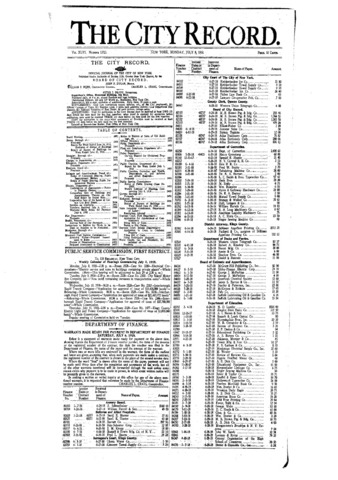 The City Record newspaper publishes notices which includes but is not limited to: public hearings and meetings, public auctions and sales, solicitations and awards and official rules proposed and adopted by city agencies. This is the City Record Newspaper for July 08, 1918.
