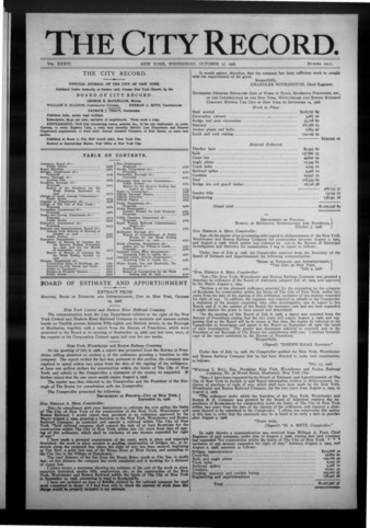 The City Record newspaper publishes notices which includes but is not limited to: public hearings and meetings, public auctions and sales, solicitations and awards and official rules proposed and adopted by city agencies. This is the City Record Newspaper for October 17, 1906.