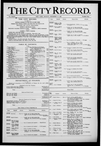 The City Record newspaper publishes notices which includes but is not limited to: public hearings and meetings, public auctions and sales, solicitations and awards and official rules proposed and adopted by city agencies. This is the City Record Newspaper for December 10, 1906.