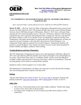 - 18-15 NYC Emergency Management Issues Travel Advisory for Friday, March 20, 2015