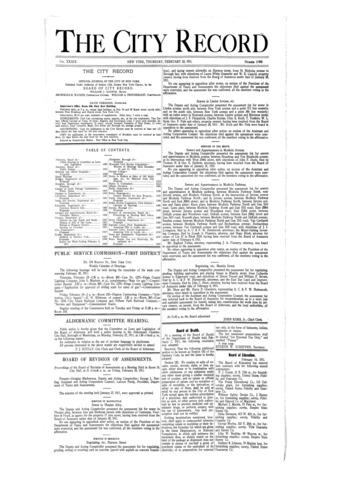 The City Record newspaper publishes notices which includes but is not limited to: public hearings and meetings, public auctions and sales, solicitations and awards and official rules proposed and adopted by city agencies. This is the City Record Newspaper for February 23, 1911.
