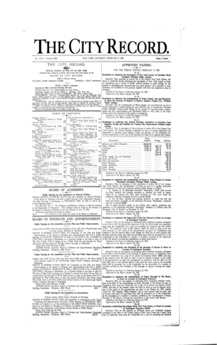 The City Record newspaper publishes notices which includes but is not limited to: public hearings and meetings, public auctions and sales, solicitations and awards and official rules proposed and adopted by city agencies. This is the City Record Newspaper for February 09, 1918.