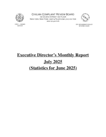 The CCRB Executive Director's Monthly Report provides the public with all relevant statistics on CCRB complaints, including board dispositions, substantiation rates, truncations, and statistics on mediations and the Administrative Prosecution Unit.