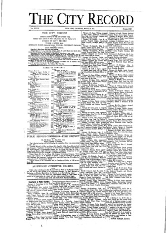 The City Record newspaper publishes notices which includes but is not limited to: public hearings and meetings, public auctions and sales, solicitations and awards and official rules proposed and adopted by city agencies. This is the City Record Newspaper for March 09, 1911.