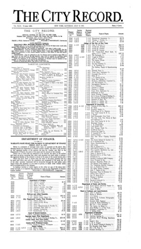 The City Record newspaper publishes notices which includes but is not limited to: public hearings and meetings, public auctions and sales, solicitations and awards and official rules proposed and adopted by city agencies. This is the City Record Newspaper for July 17, 1915.