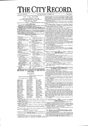 The City Record newspaper publishes notices which includes but is not limited to: public hearings and meetings, public auctions and sales, solicitations and awards and official rules proposed and adopted by city agencies. This is the City Record Newspaper for November 02, 1916.
